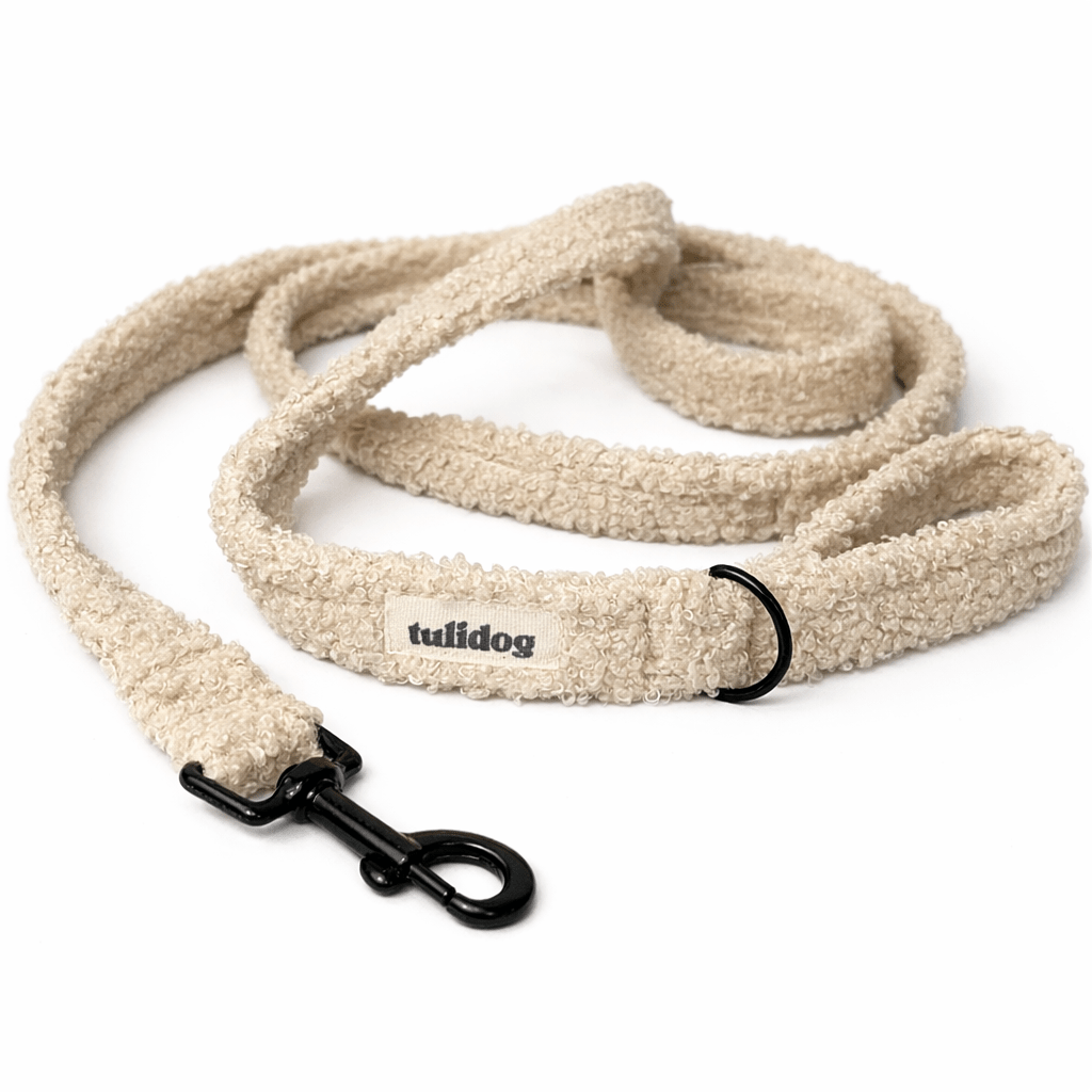Idealne połączenie stylu i wytrzymałości. Obszyta miękkim materiałem bouclé, wygodnie leży w dłoni (również ją ogrzewa!), a mocne taśmy nylonowe i tytanowe nici gwarantują bezpieczeństwo podczas każdego spaceru.