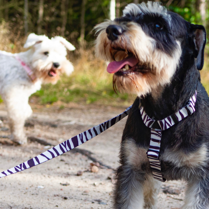Smycze wykonane są z lekkich i miękkich taśm nylonowych oraz zszyte tytanowymi nićmi — dzięki temu są wytrzymałe, komfortowe i gotowe na miejskie i leśne przygody.