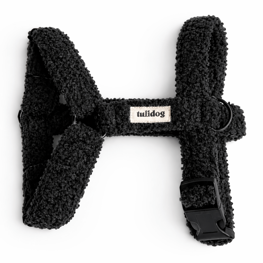 Dzięki obszyciu z delikatnego materiału bouclé Twój pupil wygląda, jakby właśnie wybierał się na wybieg… albo przynajmniej na elegancki spacer do ulubionego parku.