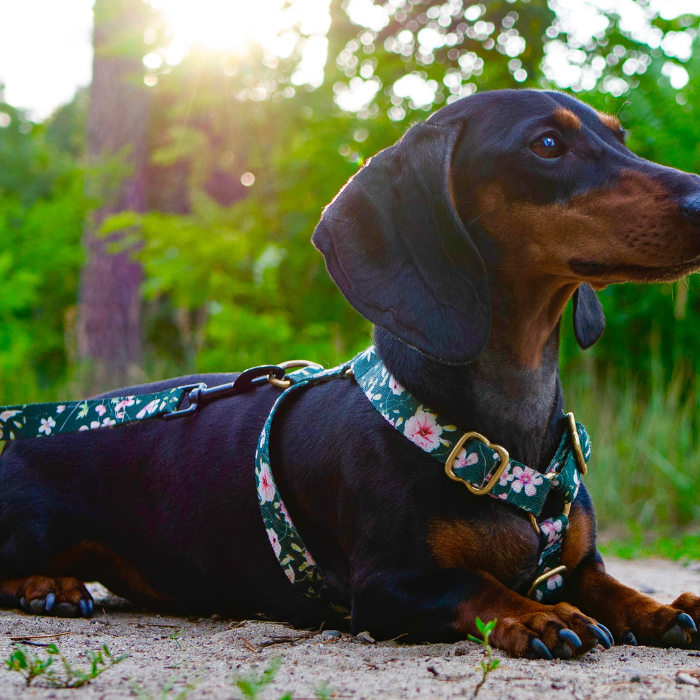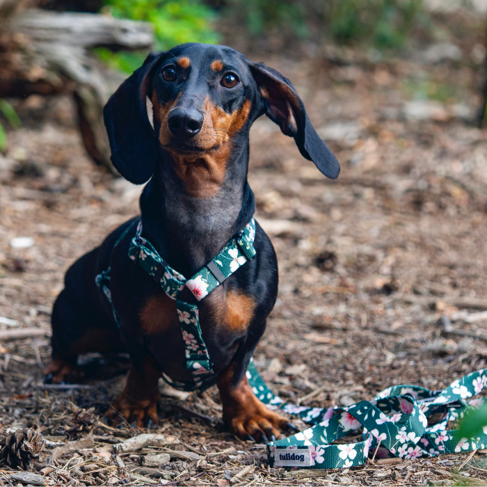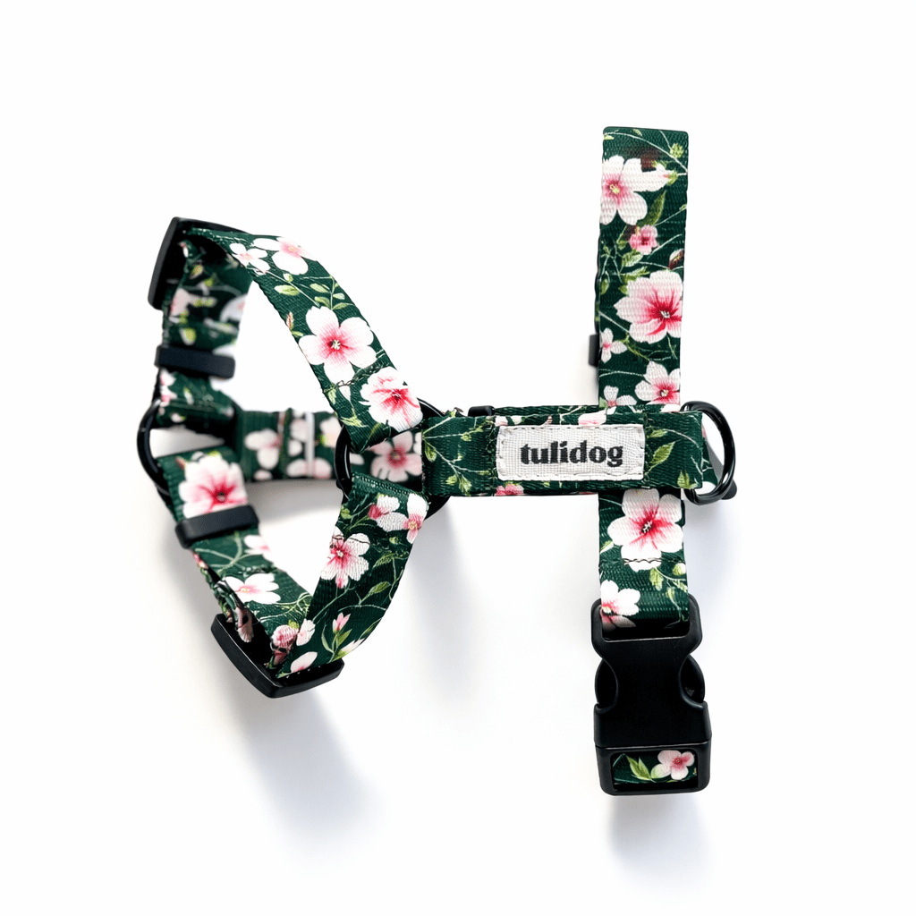 Szelki wykonane są z lekkich i miękkich taśm nylonowych oraz zszyte tytanowymi nićmi — dzięki temu są wytrzymałe, komfortowe i gotowe na miejskie i leśne przygody.